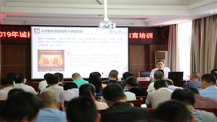 發(fā)布時間:2019-04-30 作者:文:梁宇 嚴海珍 圖:陳世染 岑瀚 來源:本站原創(chuàng) 審核:鄧永劍為全面提升工程項目管理水平,增強廉政風險防范意識,提高反腐倡廉能力與水平。2019年4月29日,城投集團在七樓大會議室舉辦工程管理人員業(yè)務知識及廉潔自律教育培訓。集團安全管理人員、法務審計人員、工程技術人員等相關業(yè)務人員80人參加了培訓。本次培訓由市城投公司高級工程師黃彬、賀州市紀委駐賀州市國資委紀檢組組長陳開鏗主講。培訓內(nèi)容包括工程管理理論知識、工程管理人員廉潔教育等知識。