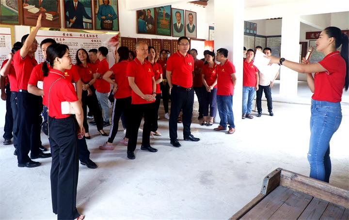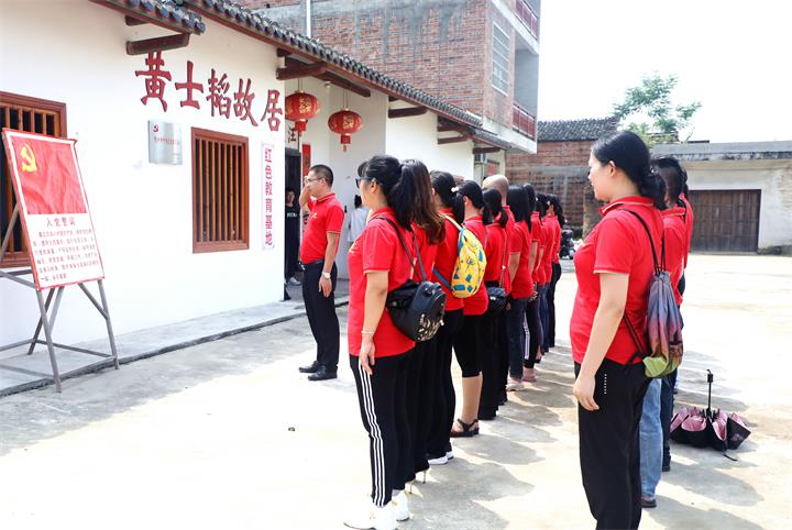 在黃士韜故居前,公司黨支部副書記蘭乾雄帶領(lǐng)黨員重溫入黨誓詞。全體黨員面向黨旗,緊握右拳,莊嚴宣誓。