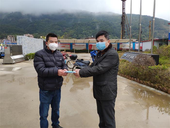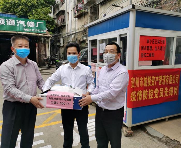 2月26日,甲供材供應(yīng)商惠普貿(mào)易公司董事長(zhǎng)黃普干代表該公司向城投資產(chǎn)管理有限公司疫情防控黨員先鋒崗捐...
